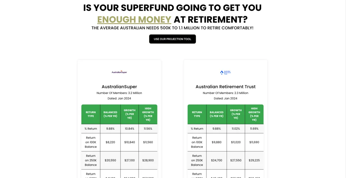 Want to know how much you will have at retirement? Use our projection tool for FREE while checking how your super fund is performing!